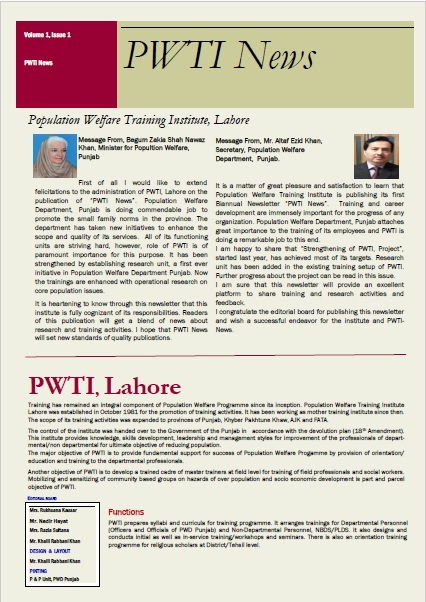 Key Initiatives PWTI Newsletter Vol: 1 Issue: 1 PWTI Newsletter Vol: 1 Issue: 2 PWTI Newsletter Vol: 3 Issue: 1